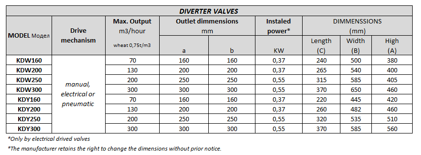 - Електро-механични клапи - задвижват се с мотор-редуктор. Тези клапи са подходящи за автоматизция на процесите в зърно базата